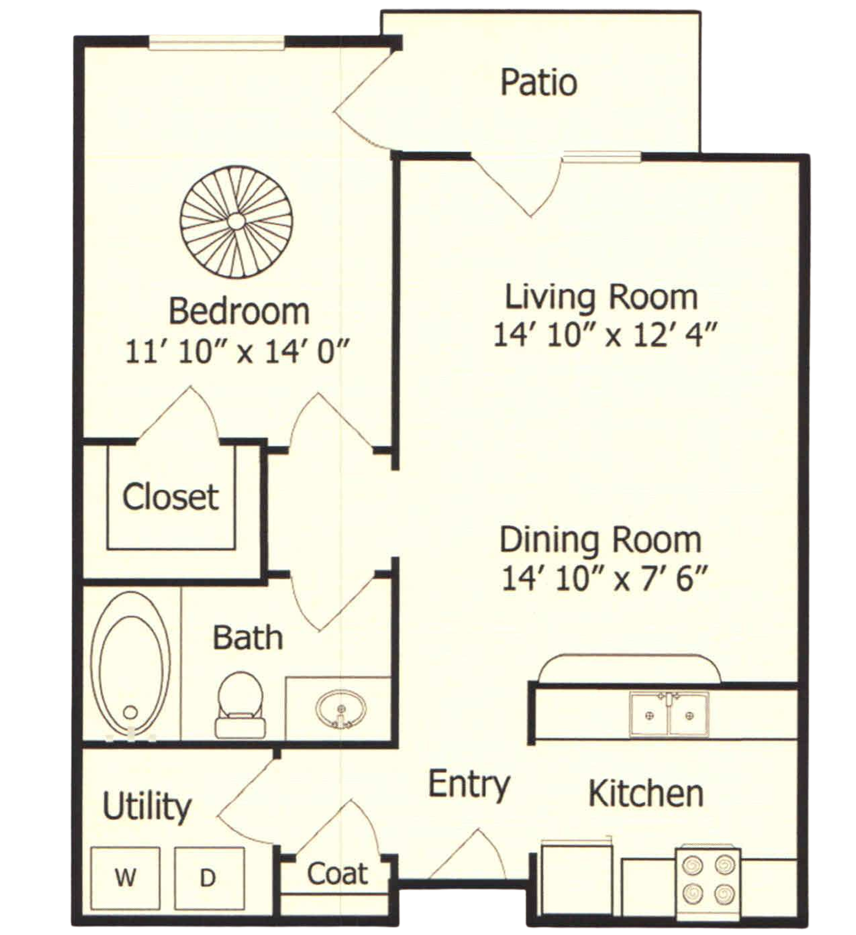 1 Bedroom / 1 Bath 846 Sq. ft.