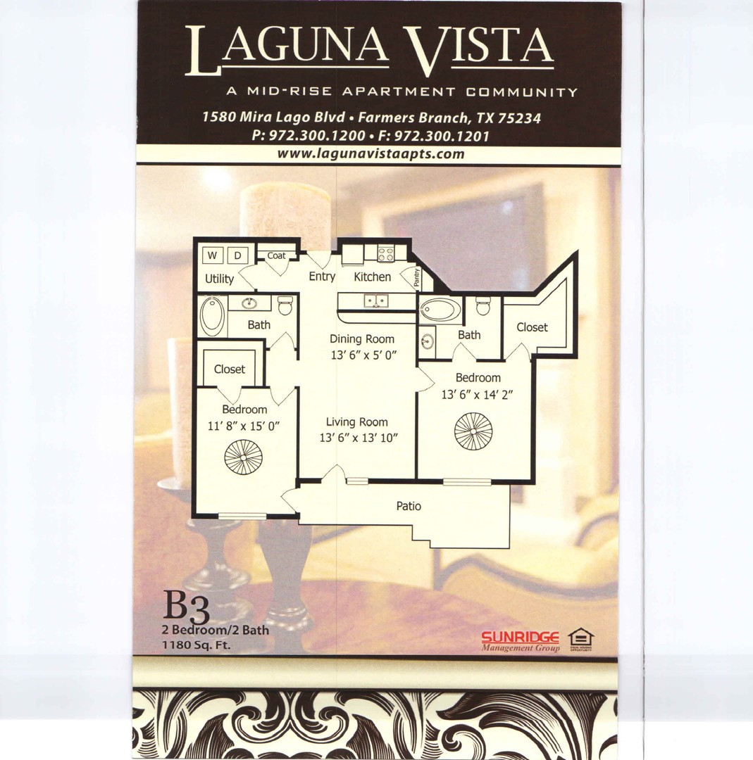 2 Bedroom/ 2 Bath 1180 Sq. ft.