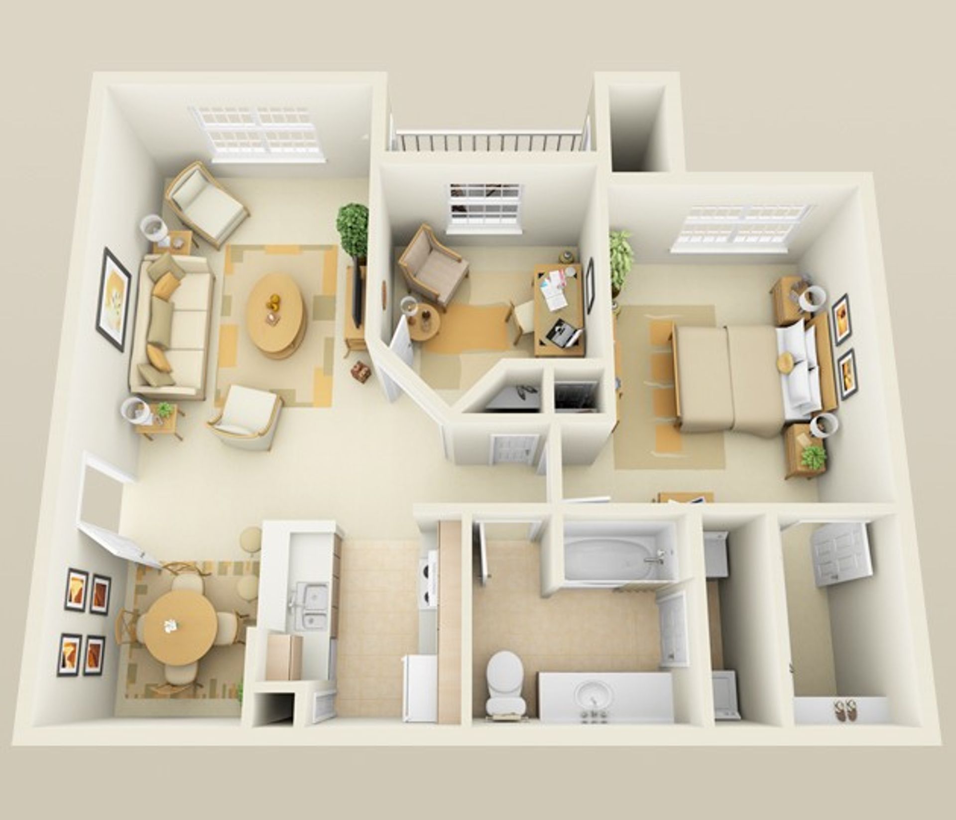 1 Bedroom/1 Bath Study 885 Sq.Ft.
