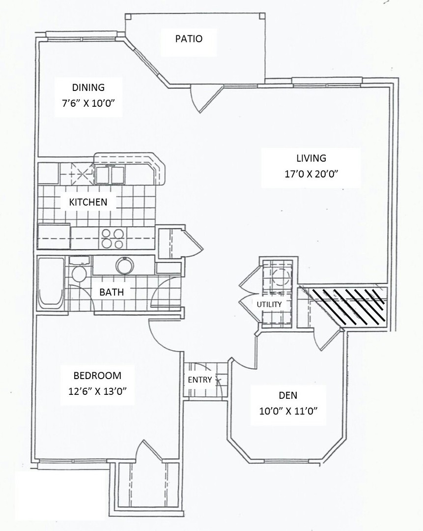 1.5 Bedroom / 1 Bathroom 1,050 sf