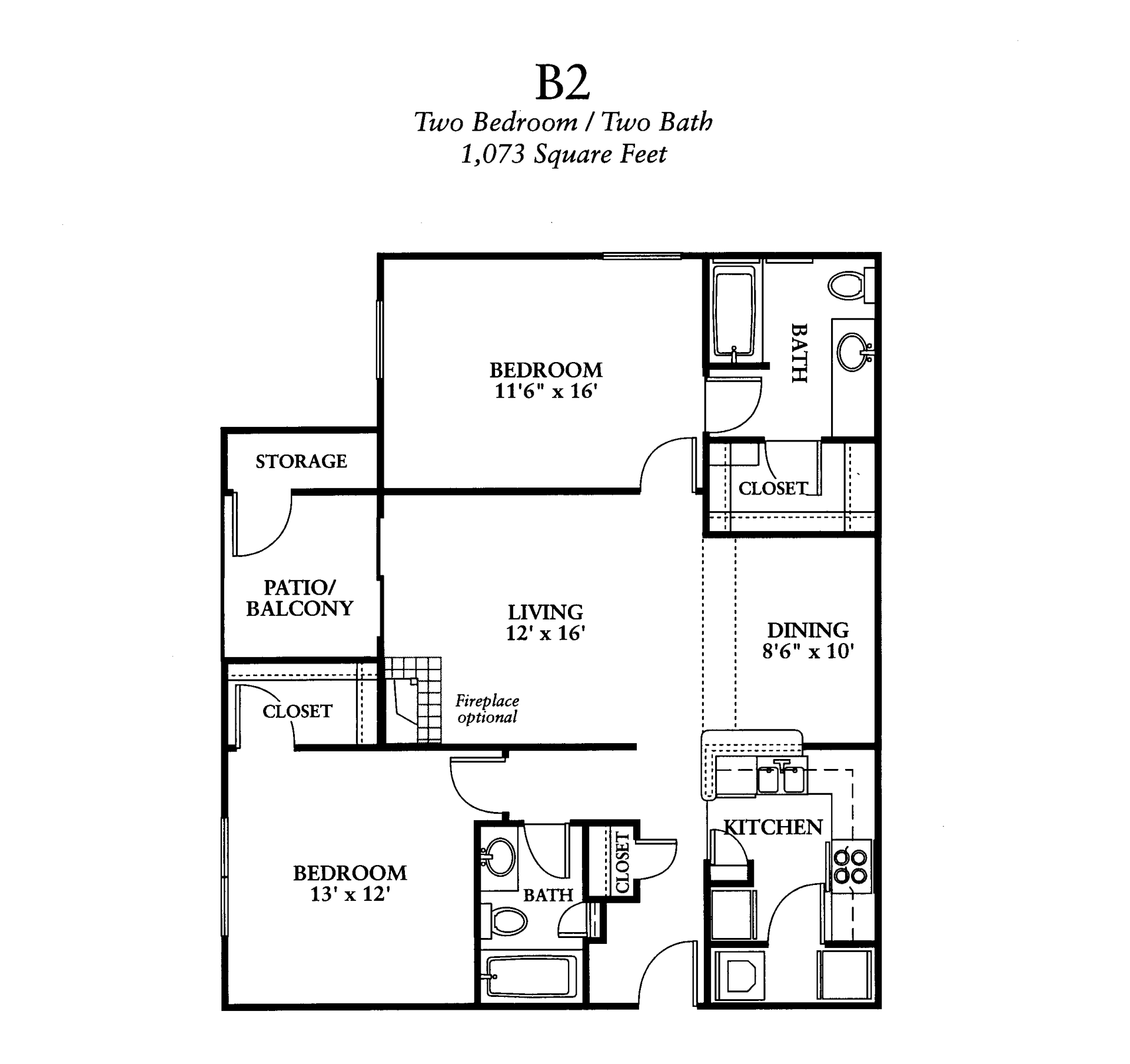 2 Bedroom/2 Bath 1073 Sq. Ft.